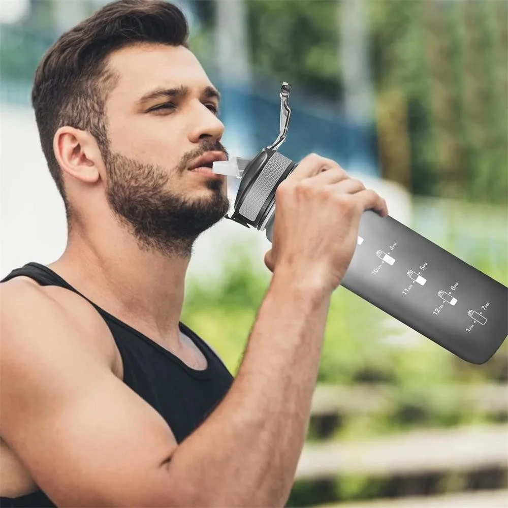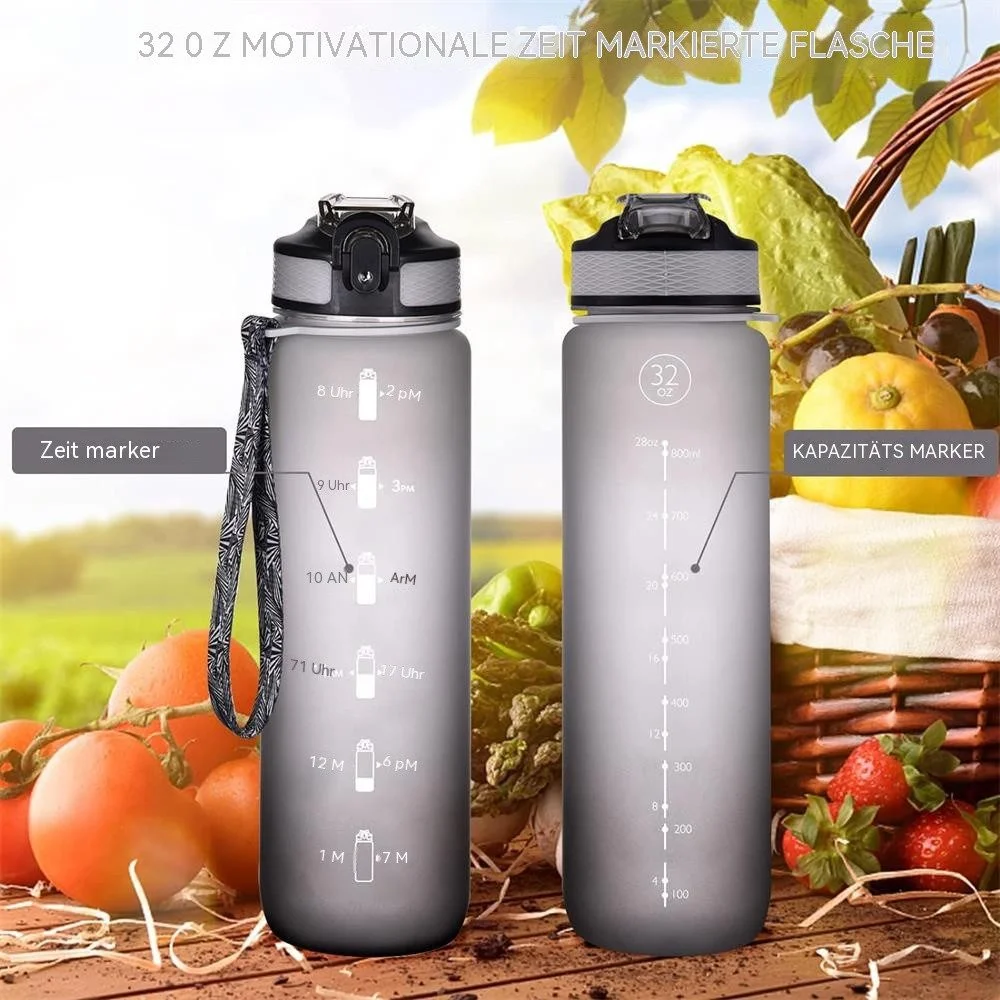 1-Liter Sport-Trinkflasche mit Zeitmarkierung & Strohhalm
