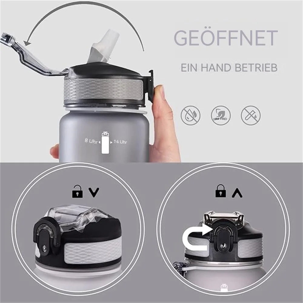 | Enthalten | 1 × Sport-Trinkflasche (1 Liter) mit Strohhalm, Zeitmarkierungen & auslaufsicherem Deckel |