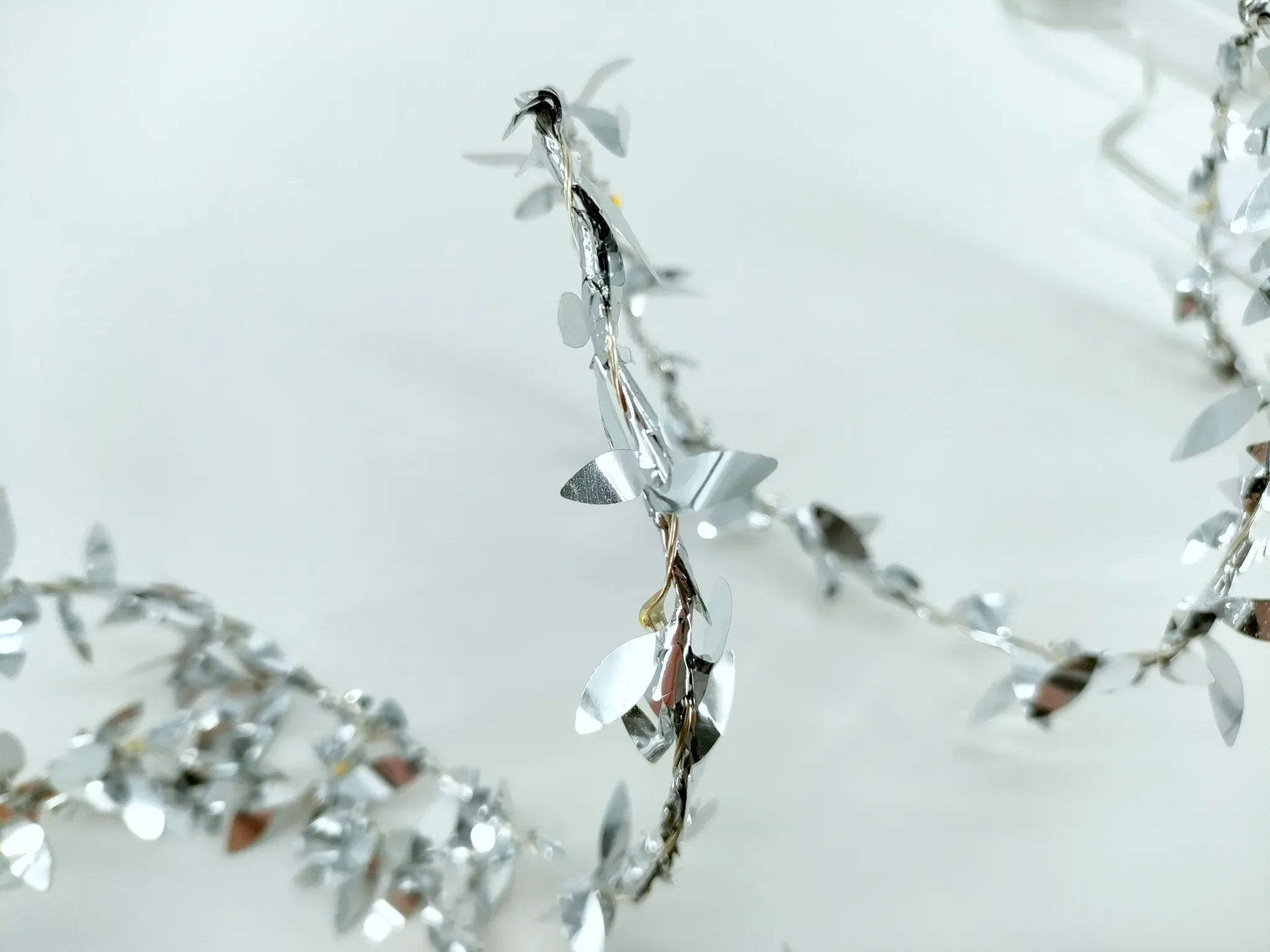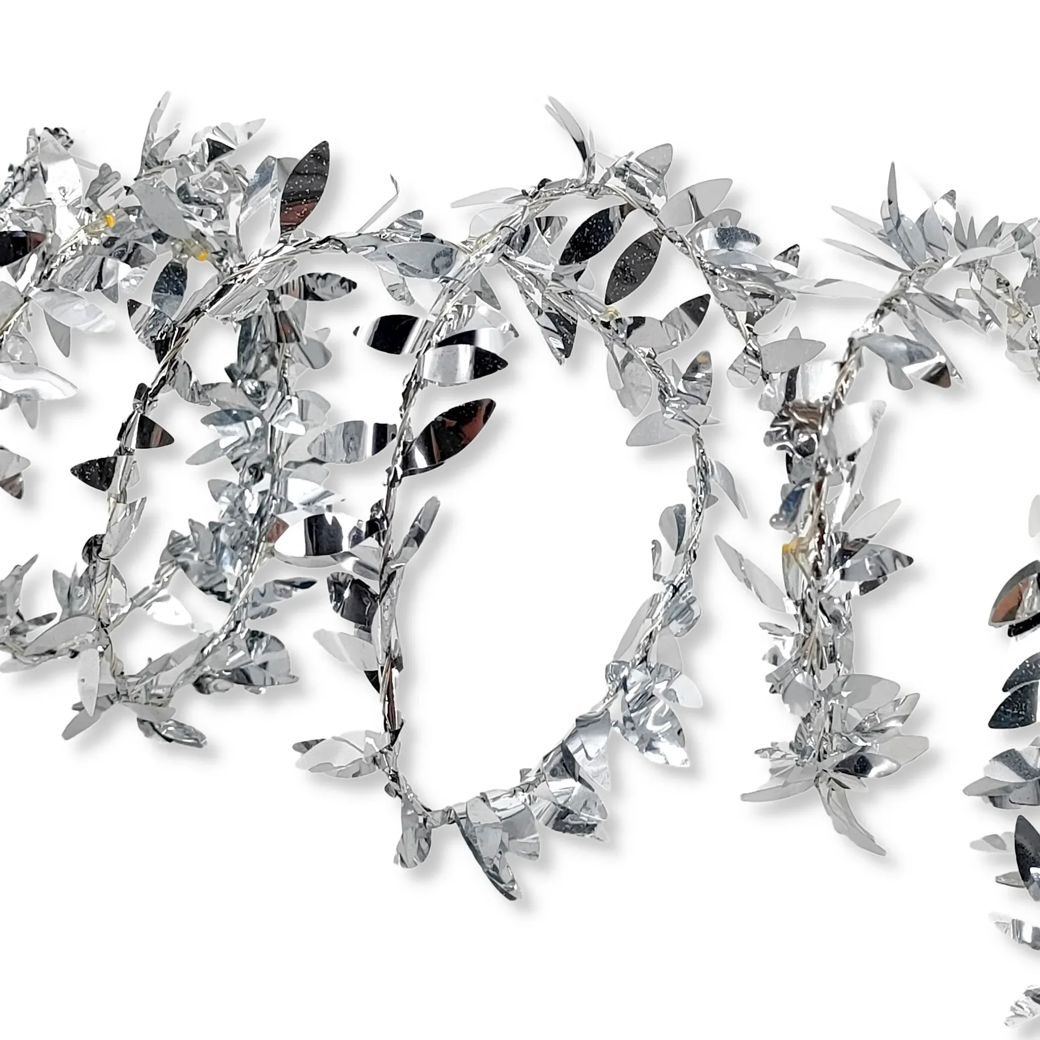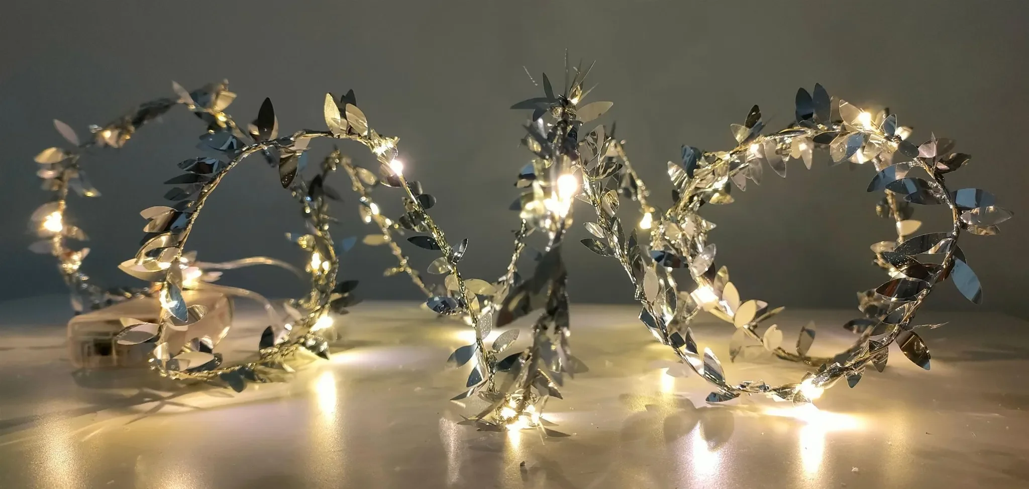 | Design | Hochglänzende, spiegelnde Silber-Blätter als Girlande auf Leuchtdraht |
