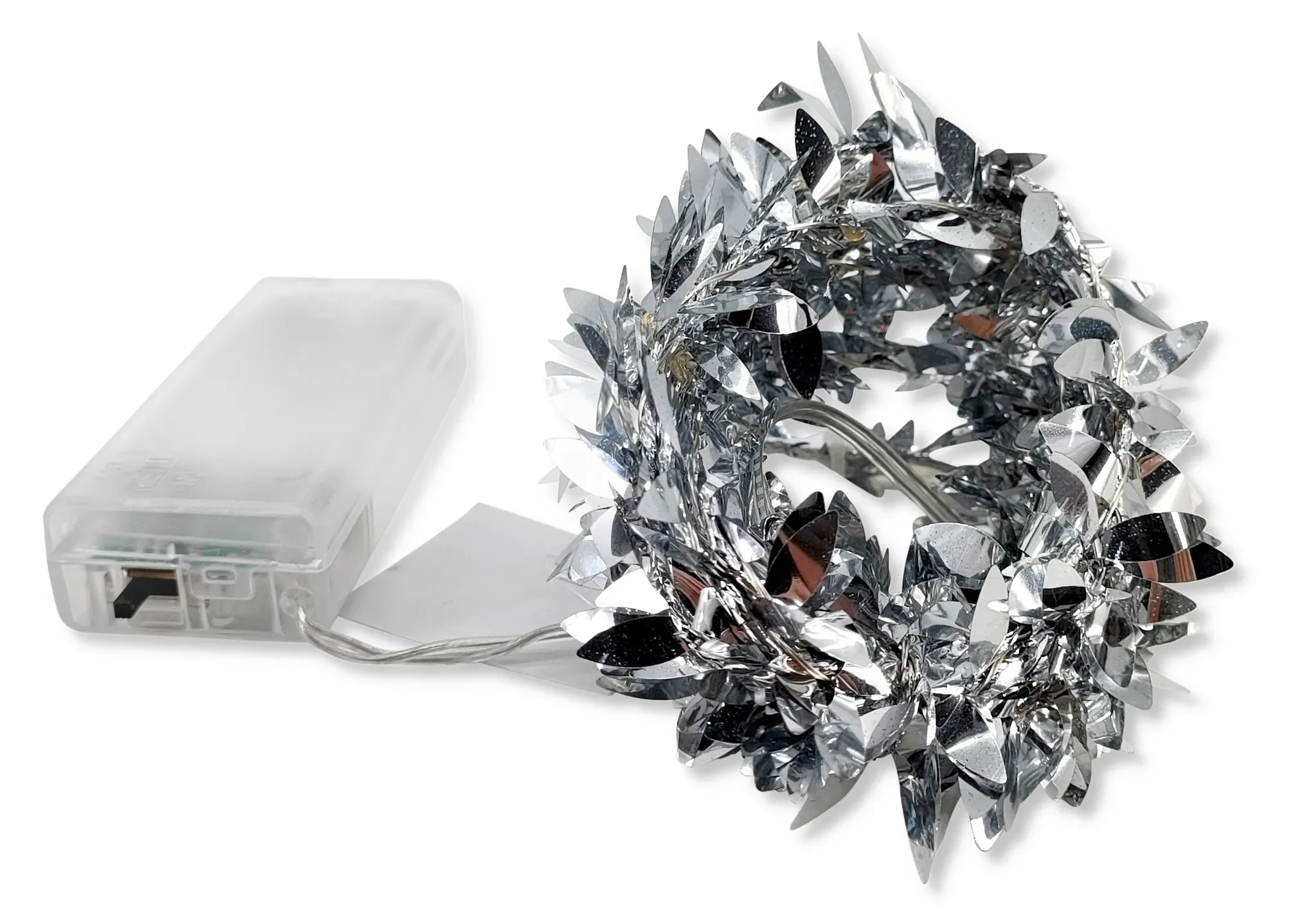| Set-Inhalt | 4 × LED Lichterkette „Silberne Blätter“, je ca. 2 m, 20 LEDs, batteriebetrieben mit Timer |