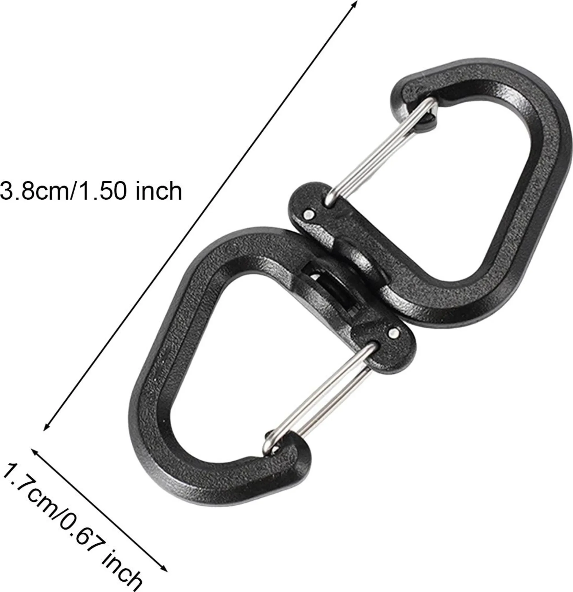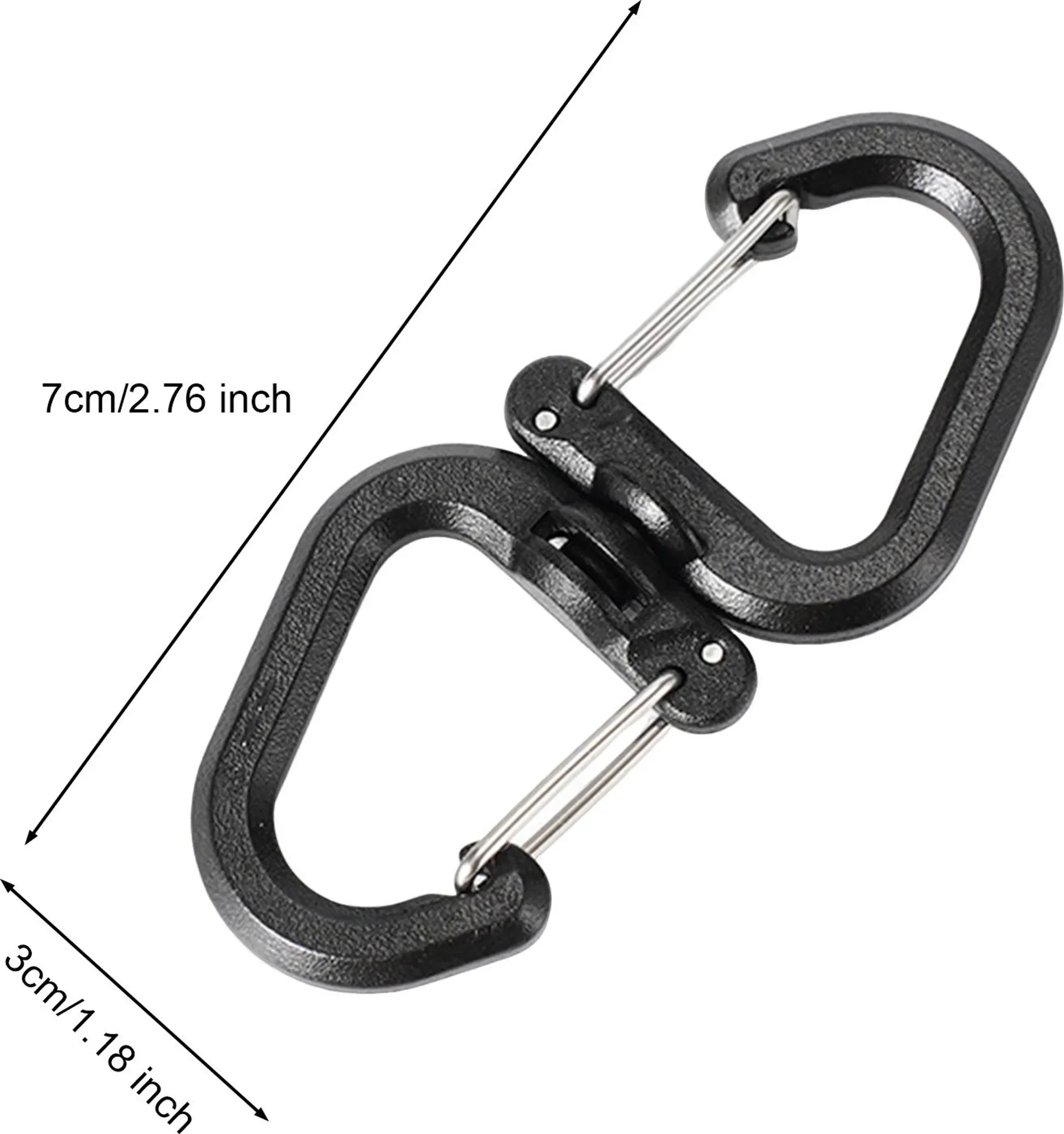 Highlights: Praktisch für Kleidung und Ausrüstung, ideal für Zelte, Rucksäcke und Outdoor-Setups, kompaktes Design, langlebiges POM-Material, flexibel dank 360° Drehmechanismus.