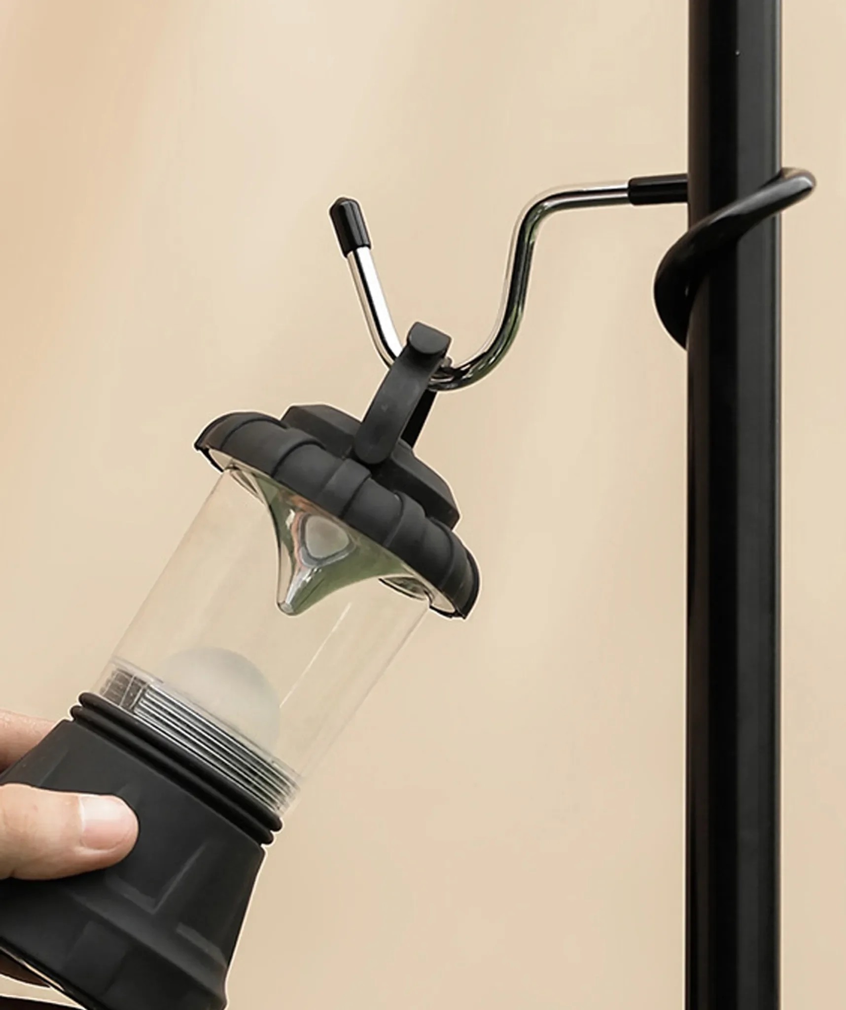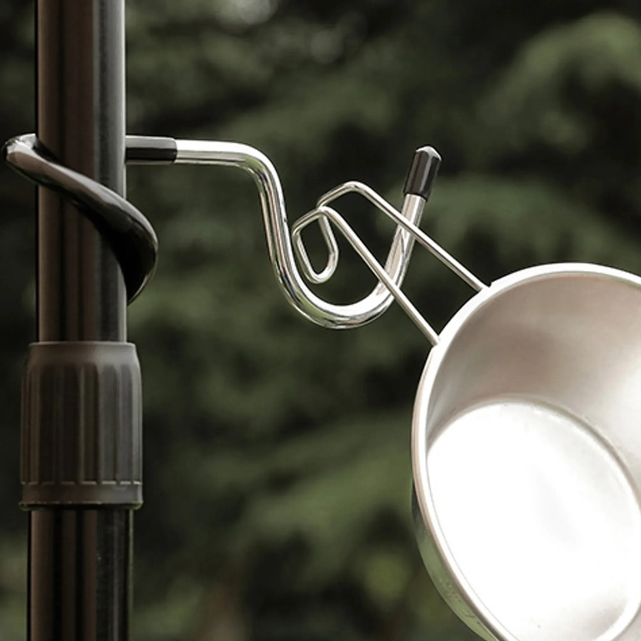 Die Haken bestehen aus robustem, biegefestem Stahl und sind damit besonders langlebig und korrosionsbeständig. Rutschfeste Gummikappen an beiden Enden sorgen für festen Halt, damit Laternen oder Ausrüstung sicher und stabil befestigt bleiben. Eine unkomplizierte und vielseitige Lösung, um Ordnung und Komfort im Outdoor-Bereich zu erhöhen.