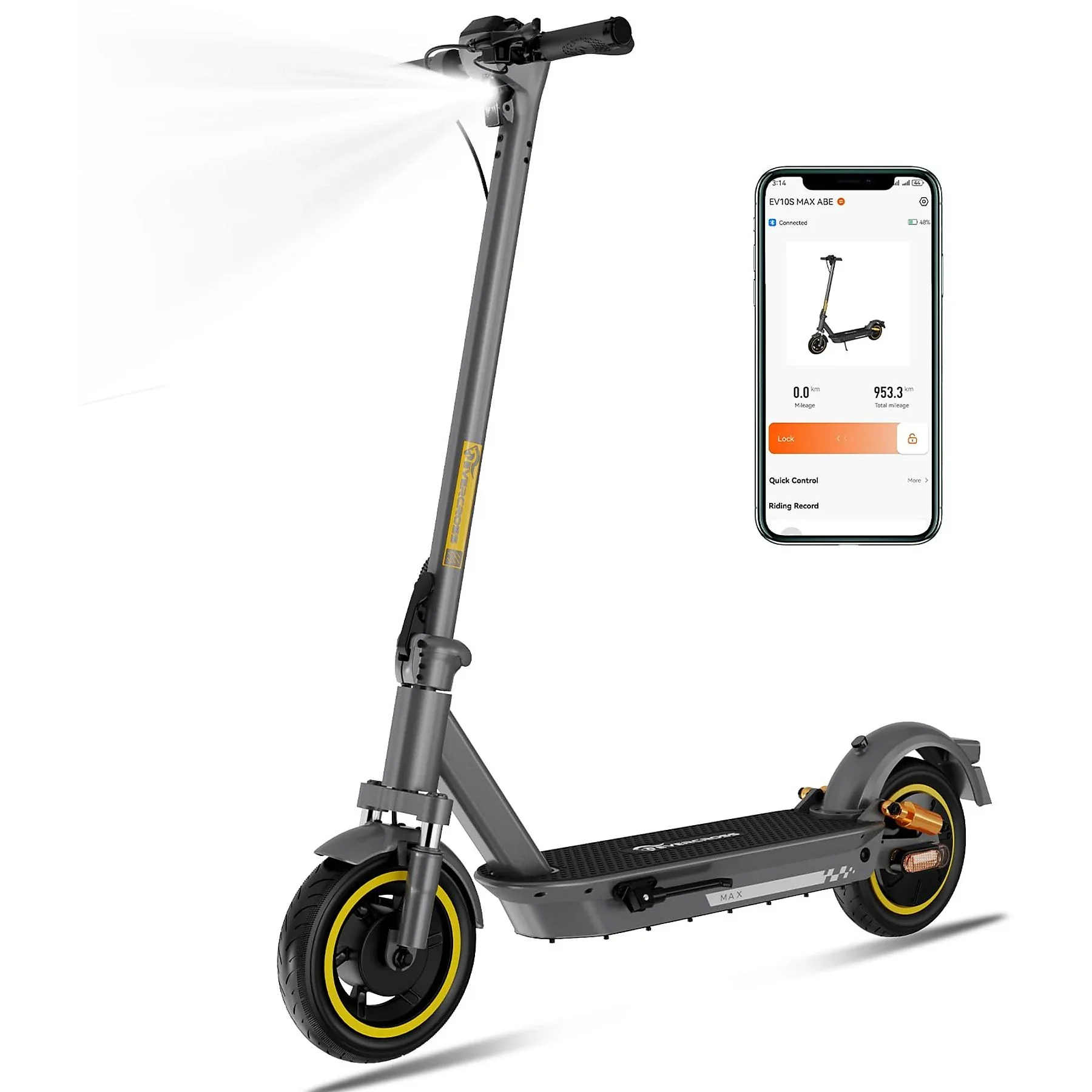 Der EV10S MAX kombiniert Straßenzulassung (ABE) mit durchdachter Technik für effizientes, komfortables und sicheres Fahren. Die 48‑V‑Batterie mit 15,6 Ah (748,8 Wh) versorgt den bürstenlosen 500‑W‑Motor mit souveräner Power, während die 10‑Zoll‑Vakuum‑Selbstheilungsreifen, doppelte Federung und ein breites Trittbrett für spürbare Laufruhe sorgen. Mit LED‑Beleuchtung, dualem Bremssystem und intelligenter App‑Steuerung entsteht ein alltagstauglicher E‑Scooter, der sowohl im Pendelverkehr als auch auf längeren Strecken überzeugt.