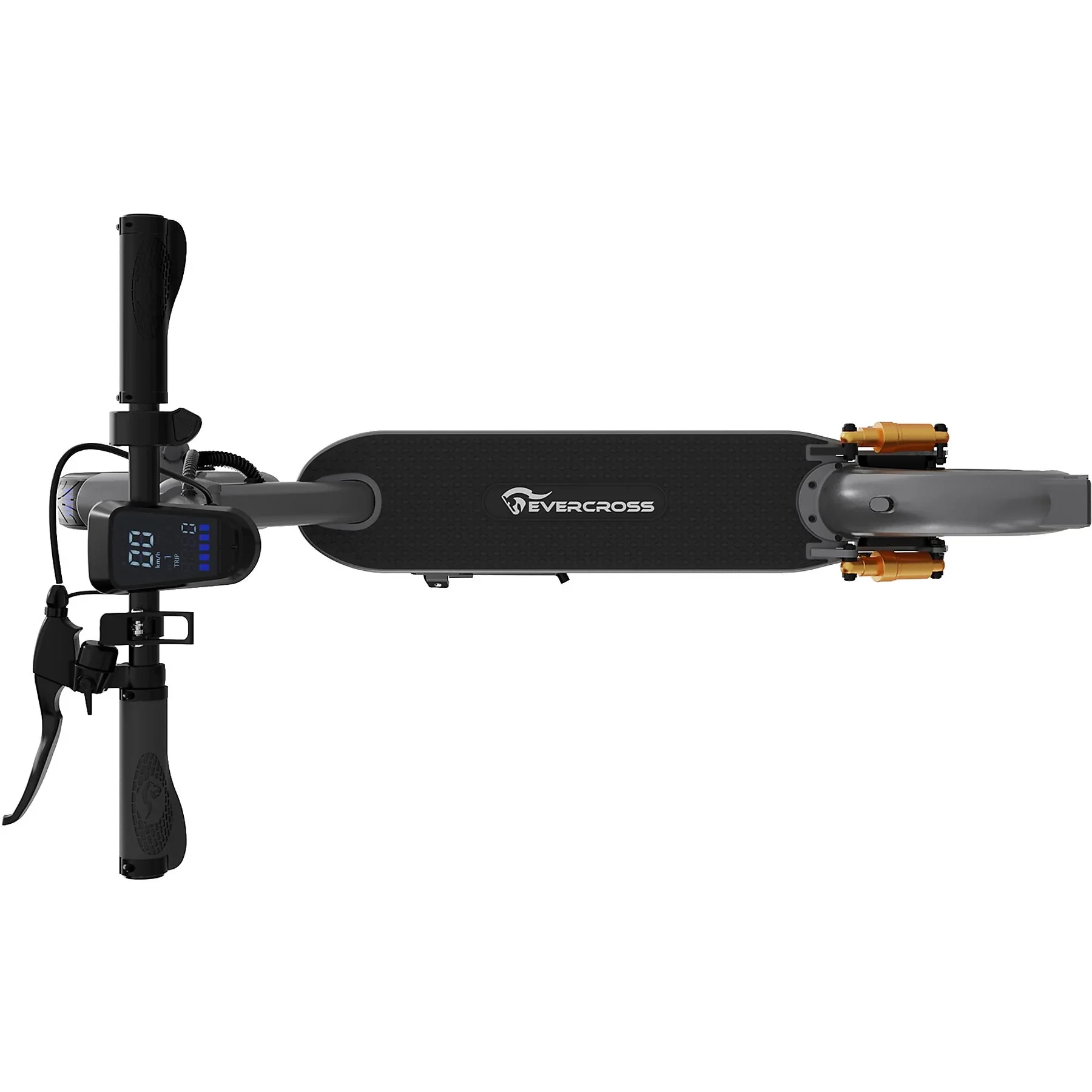 - LED‑Digitalanzeige: Geschwindigkeit, Akkustand, Strecke.