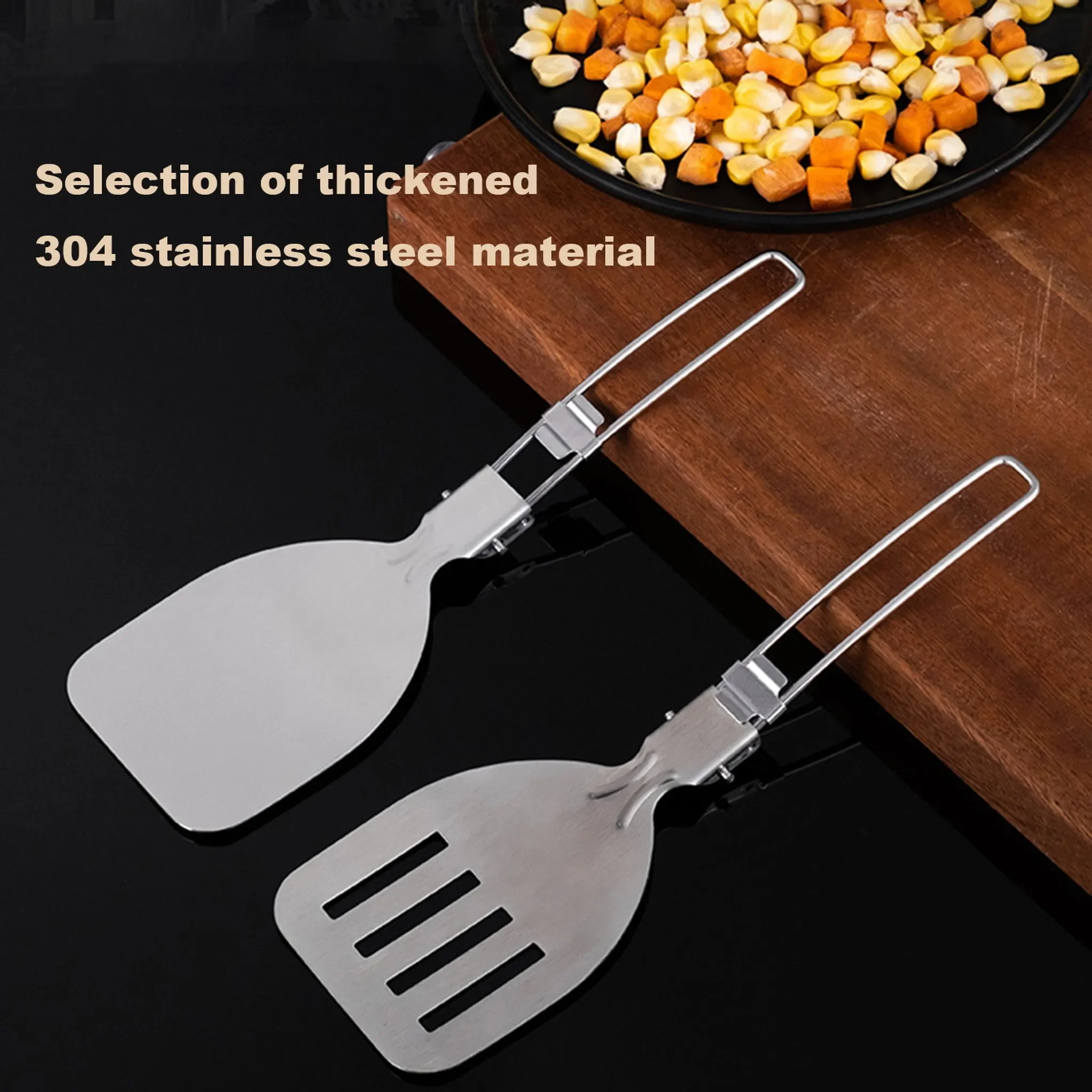 Edelstahl-Camping-Bratspatel – Modell F, mit faltbarem Griff