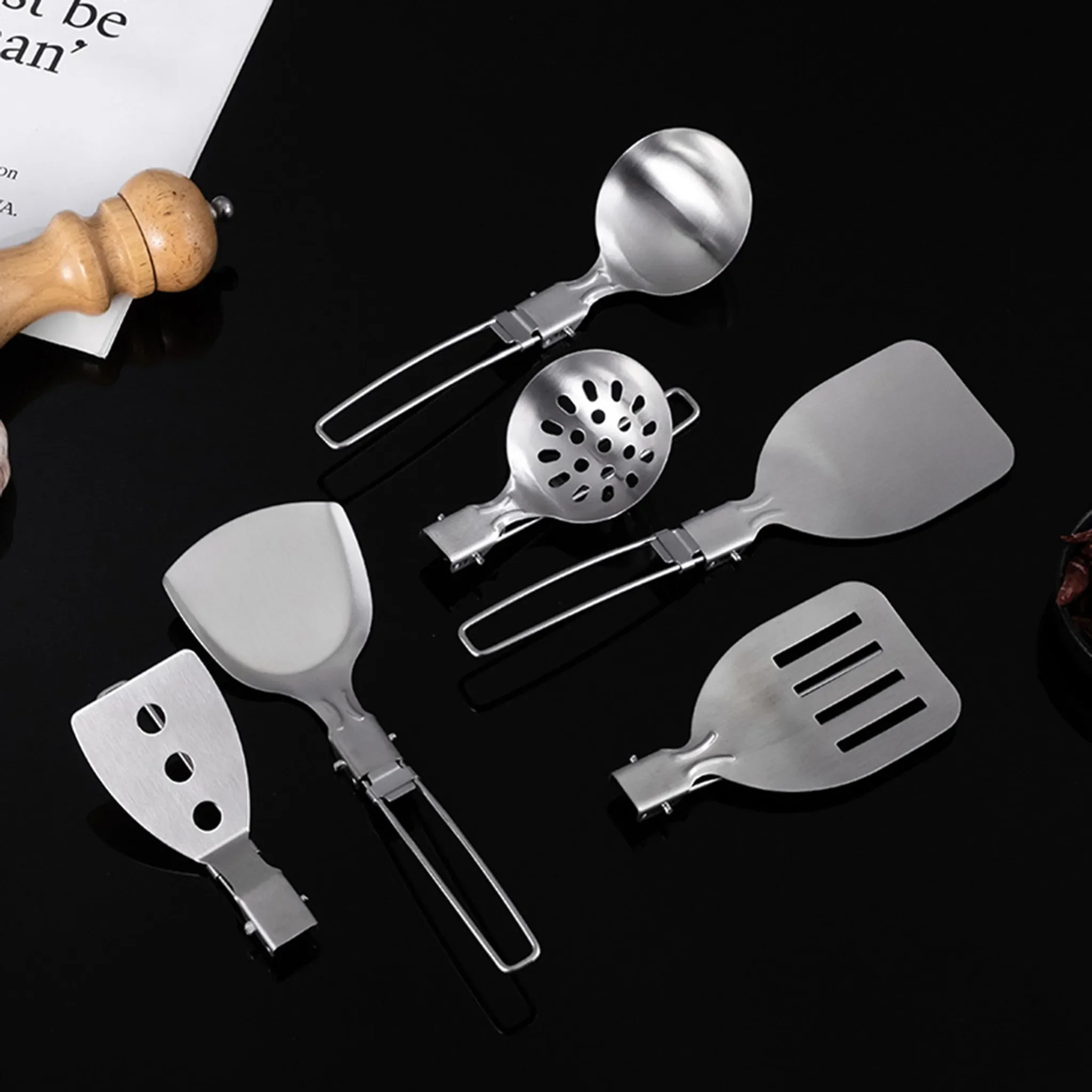 Highlights: Hitzebeständiger 304-Edelstahl, polierte Sicherheitskanten, faltbarer Griff, langlebig, ideal für Outdoor und kompakte Campingküchen, vielseitig einsetzbar.