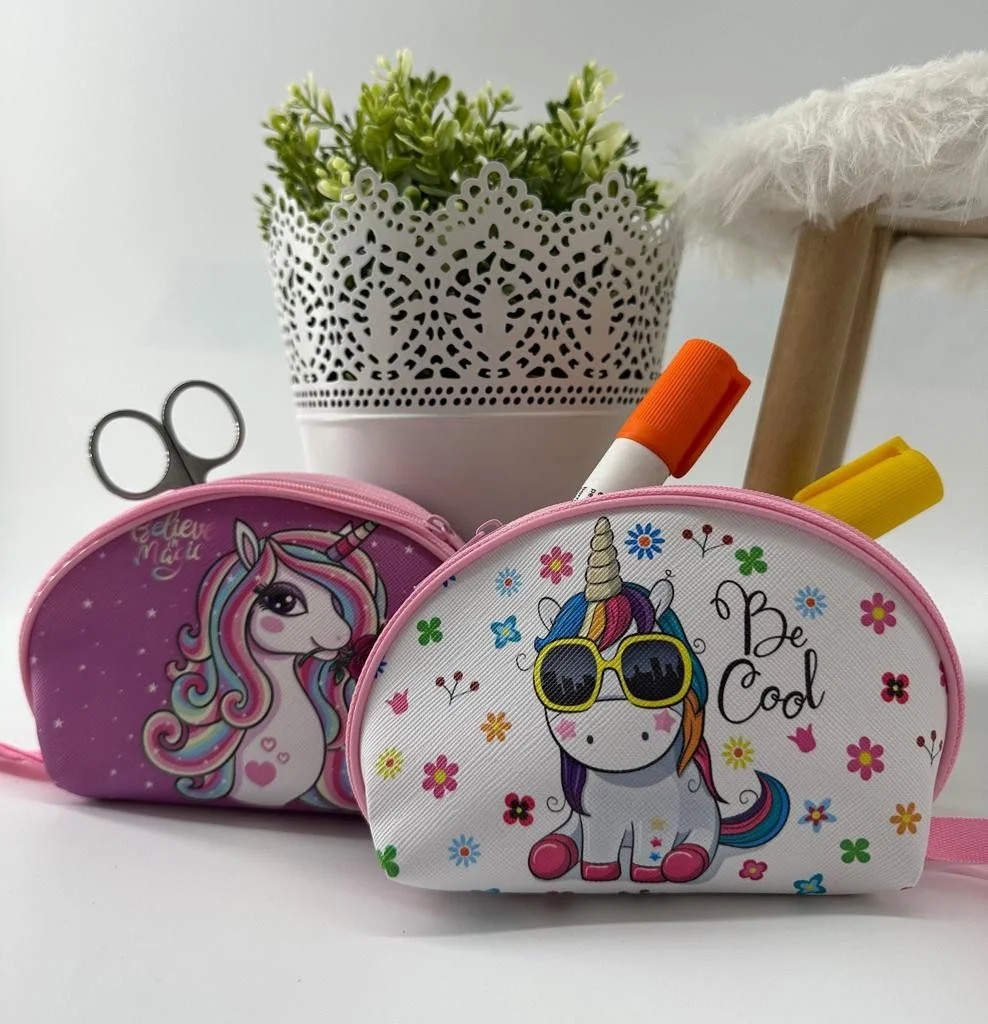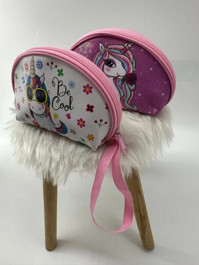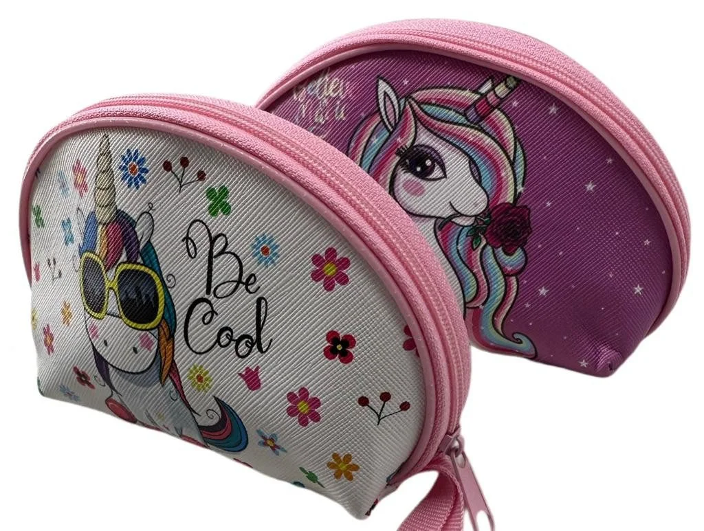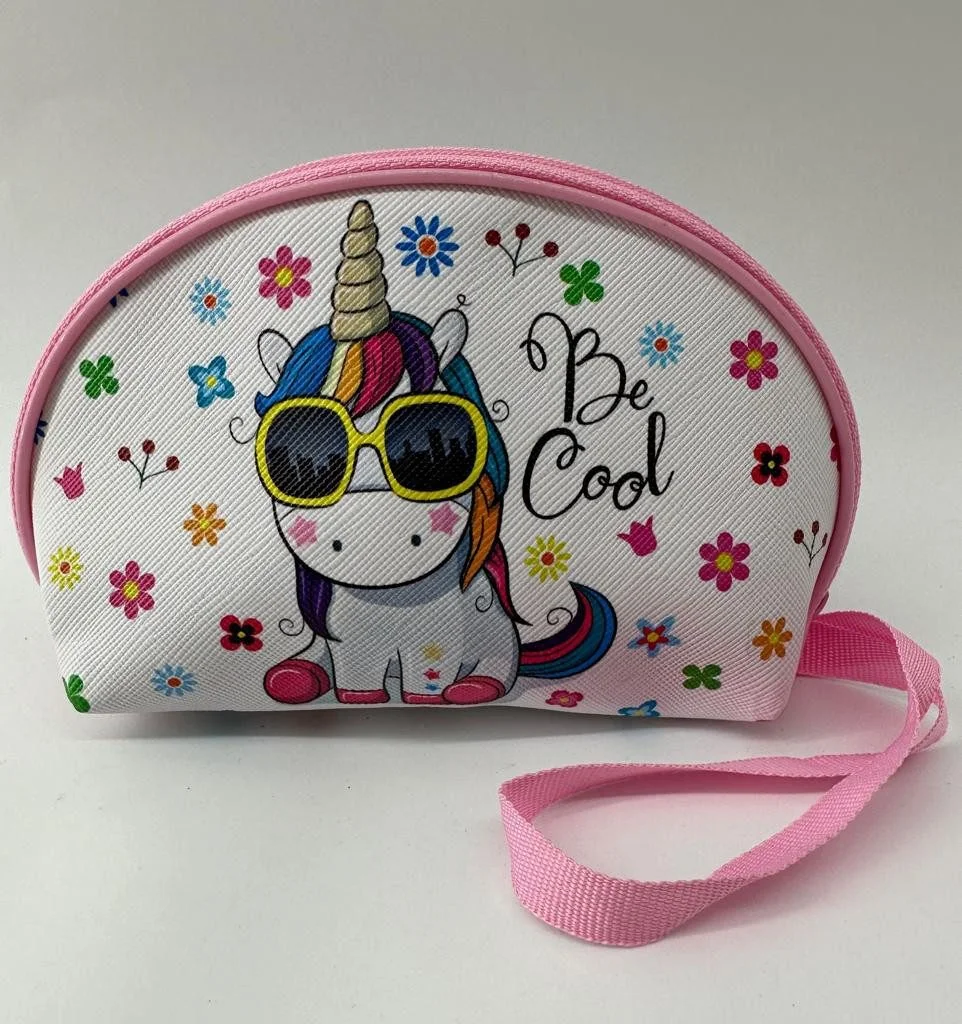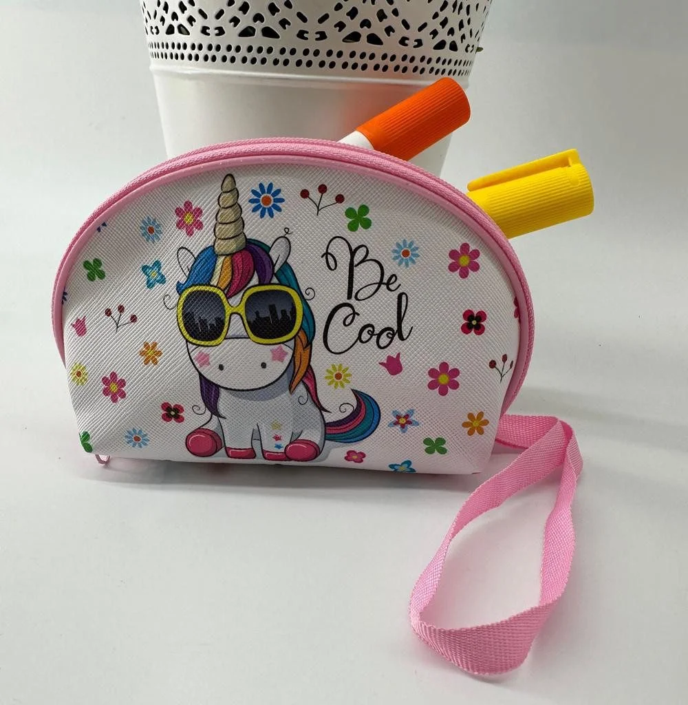Diese niedliche Einhorn-Kosmetiktasche in rosa und weiß ist der ideale Begleiter für unterwegs und daheim. Mit ihrem handlichen Format bietet sie Platz für Lippenpflege, Schminkutensilien, kleine Cremes und andere Alltagsbegleiter. Das fröhliche Einhorn-Motiv macht die Tasche besonders beliebt bei Mädchen und Einhorn-Fans jeden Alters.