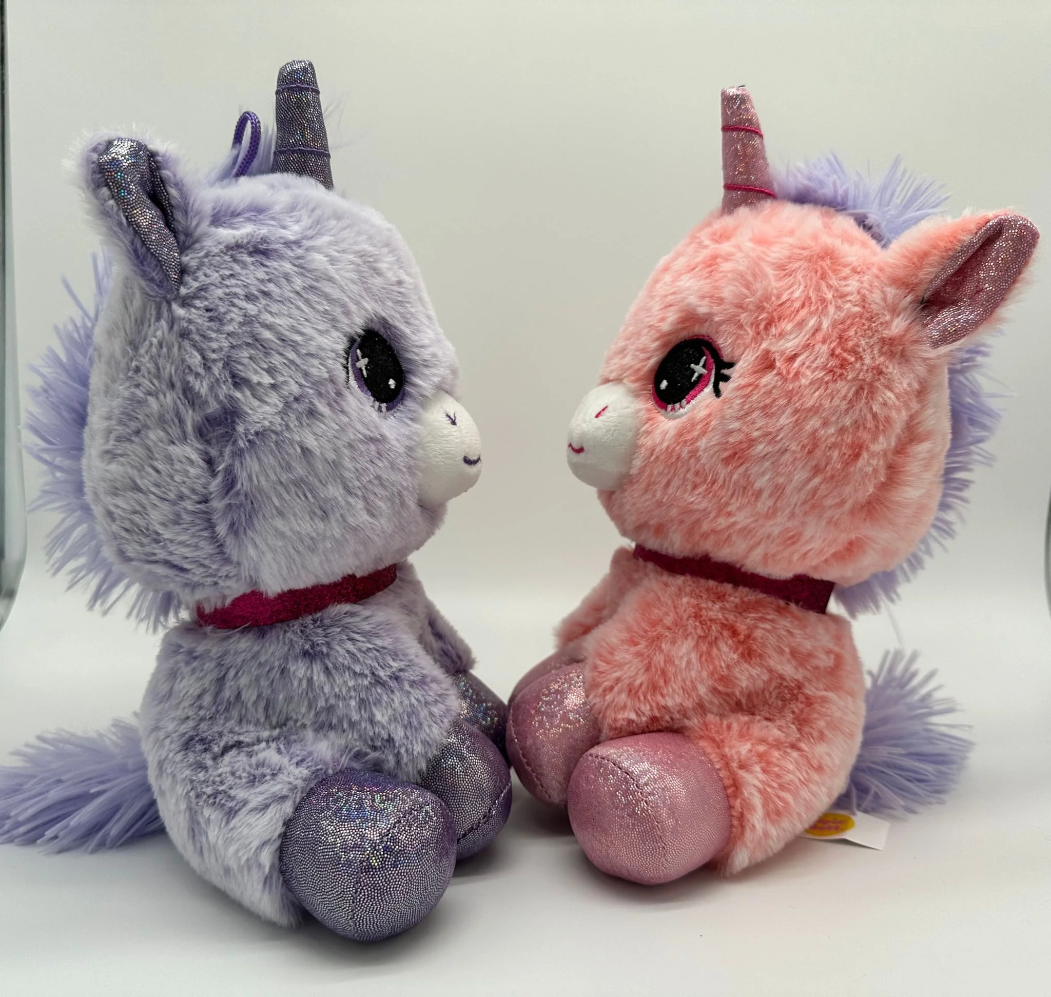 Dieses lila Einhorn-Kuscheltier ist ein mollig-weicher Freund für kleine und große Einhorn-Liebhaber. Die Plüschfigur im Kawaii-/Anime-Stil begeistert mit einem süßen Gesicht, gestickten Details sowie funkelnden Akzenten – und ist mit ca. 25 cm genau richtig zum Knuddeln, Spielen oder als Deko auf Bett und Sofa.