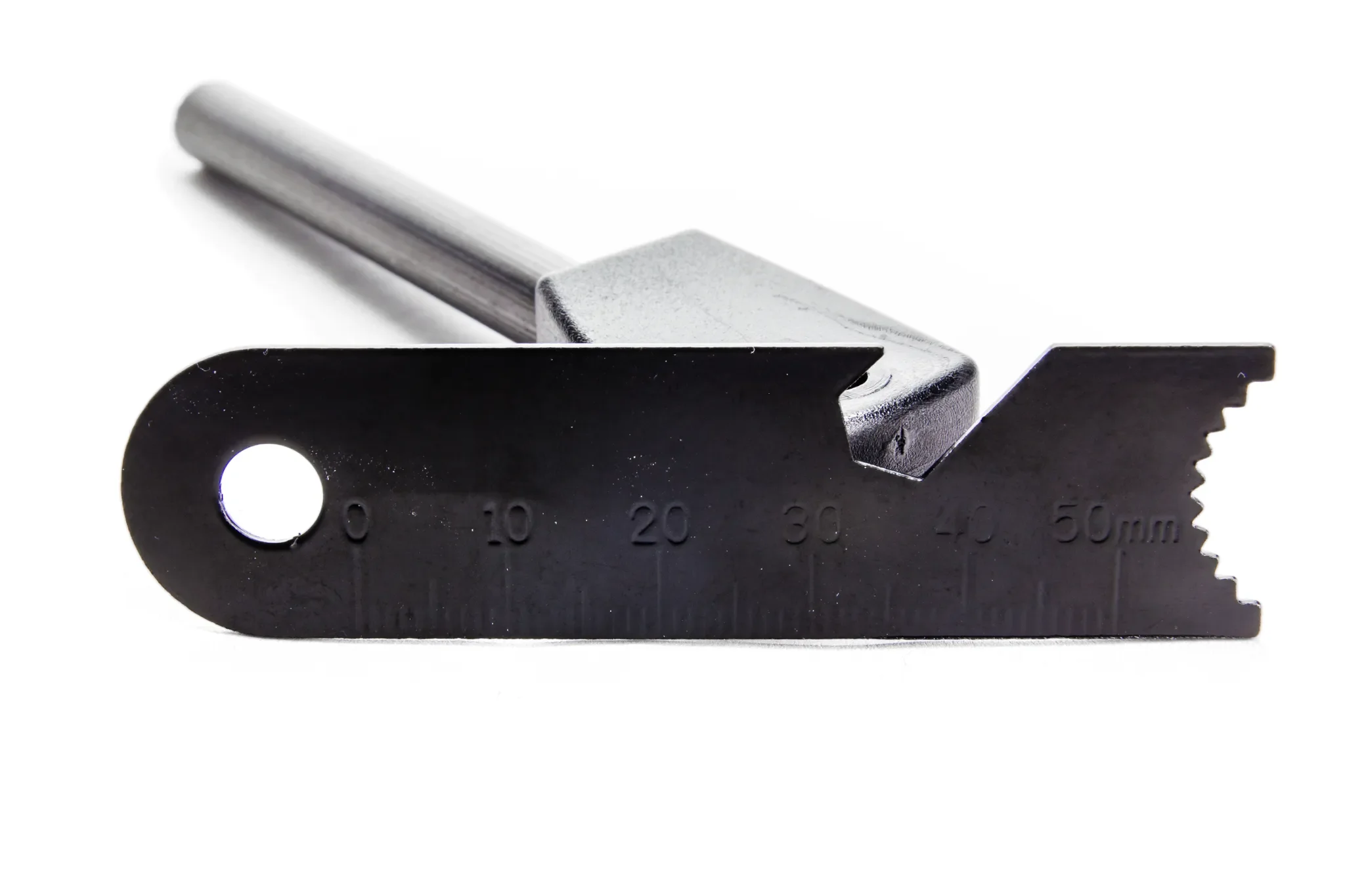 - Mit dem Multifunktions-Schaber oder einem Messer die Schutzschicht vom Magnesiumstab abkratzen.