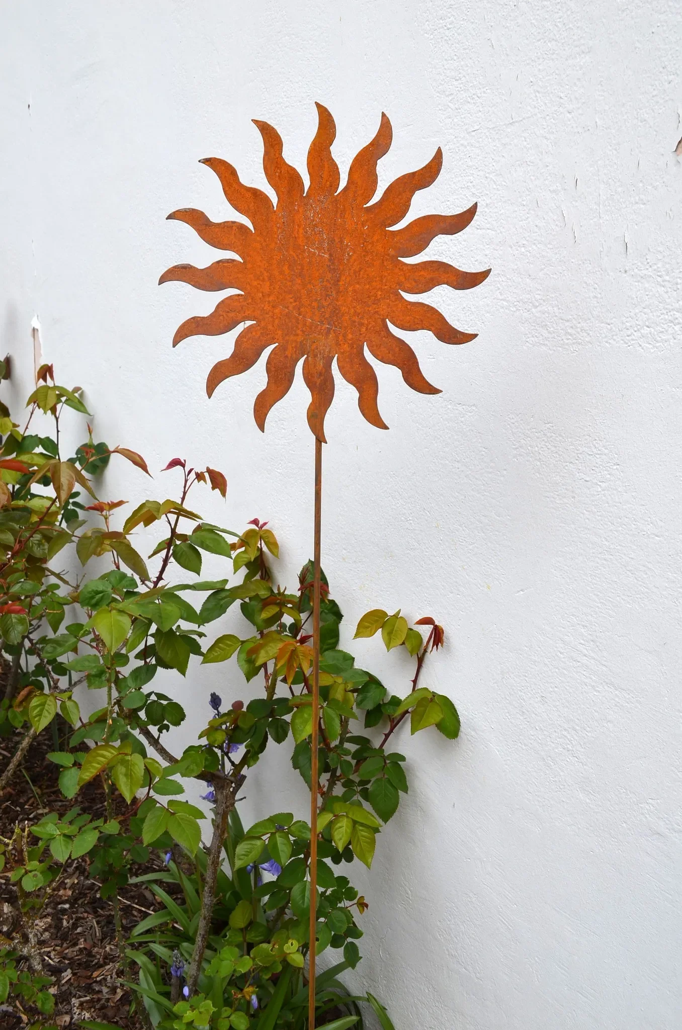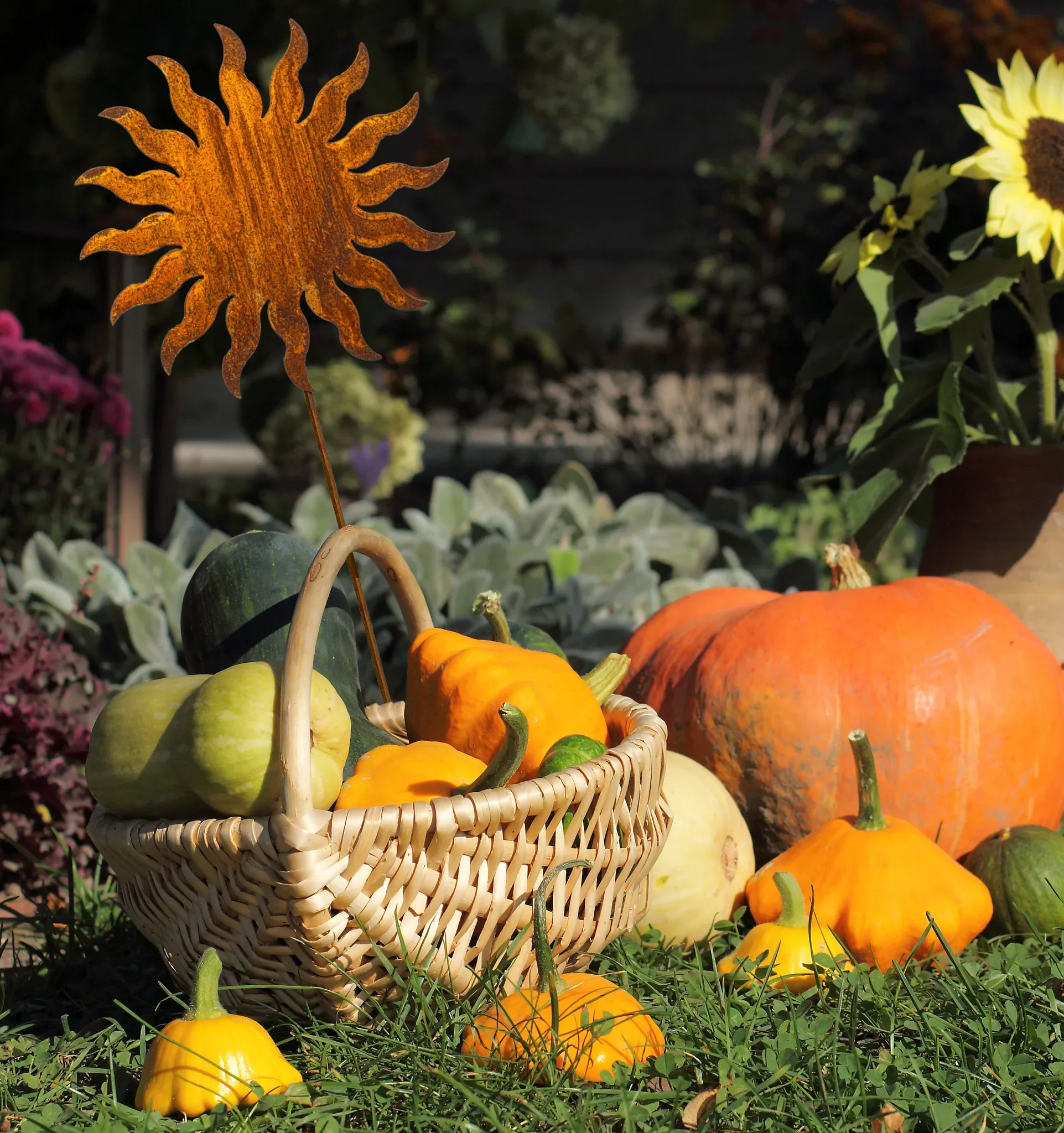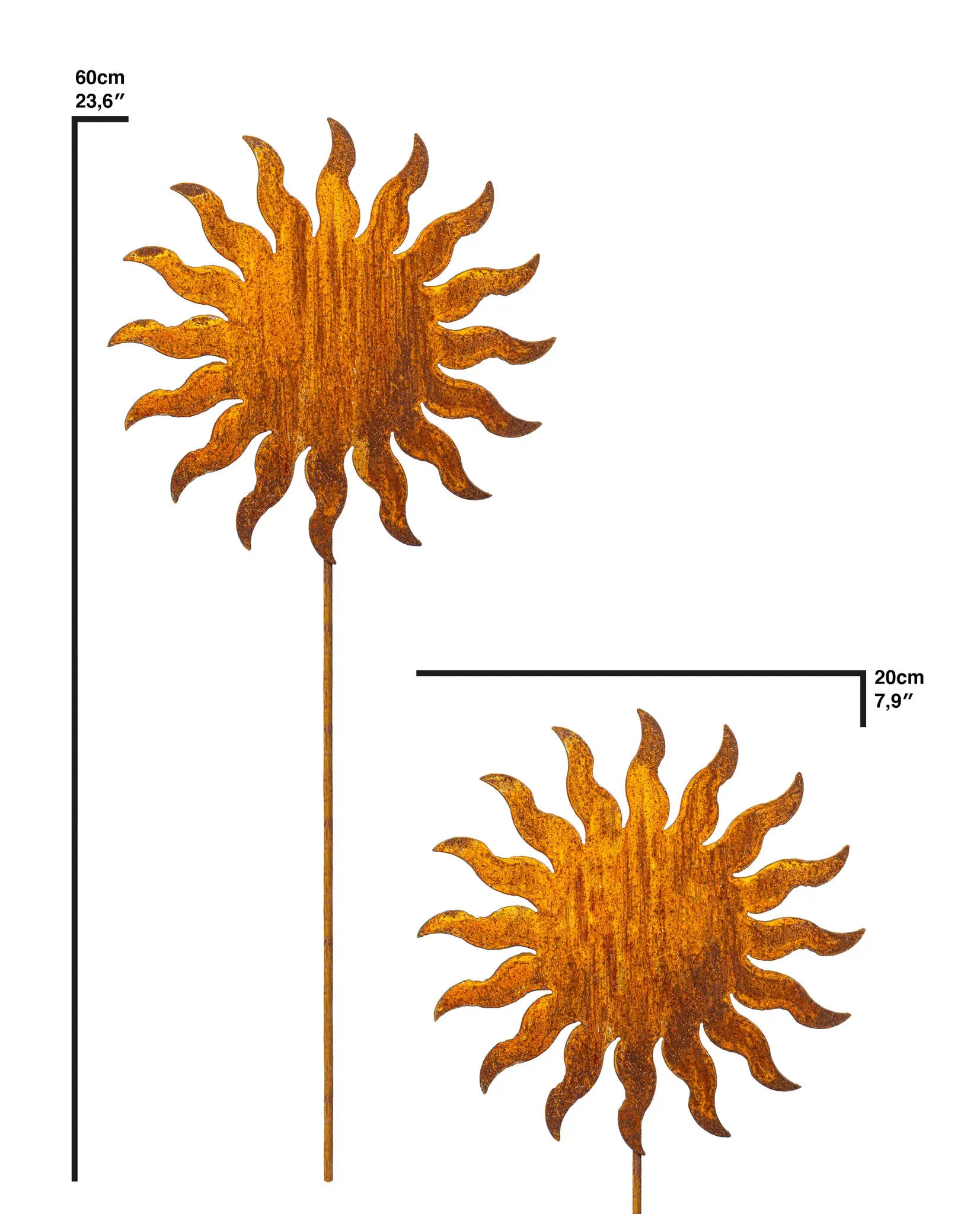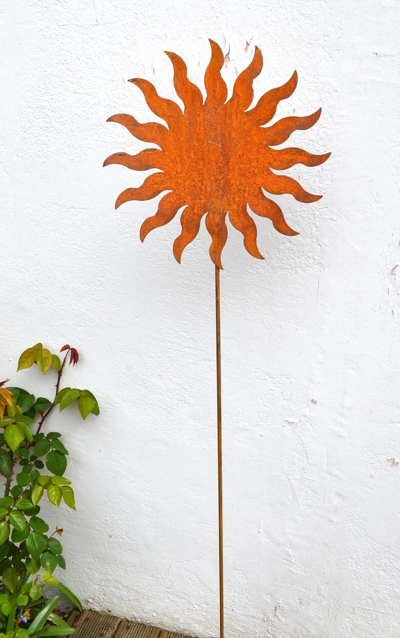 - Dekorativer Gartenstecker in Sonnenform aus Edelrost